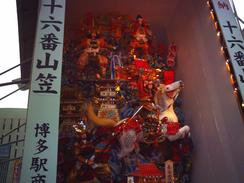 博多駅、キャナルに山笠が飾ってありもう山笠の季節なんだなと